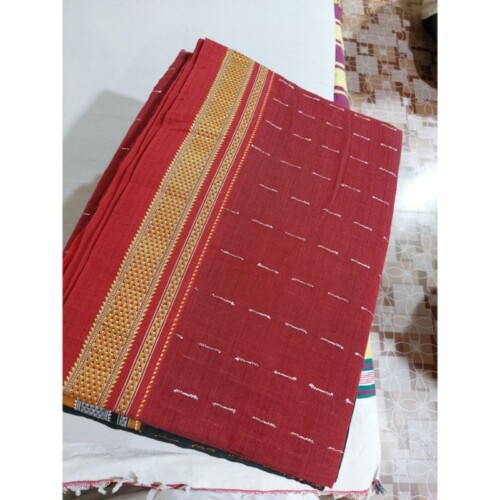 Pure Cotton handwoven ilkal saree with cotton pallu & running blouse, 6.2 mtrs saree length